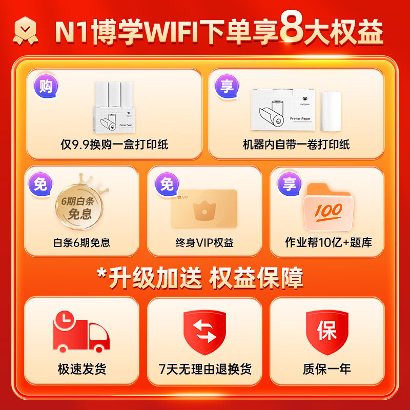 喵喵机N1【博学版】高清灰阶作业帮学生错题整理家用热敏可拍照可触屏智能学习错题打印机 WIFI版价格:999.00元!