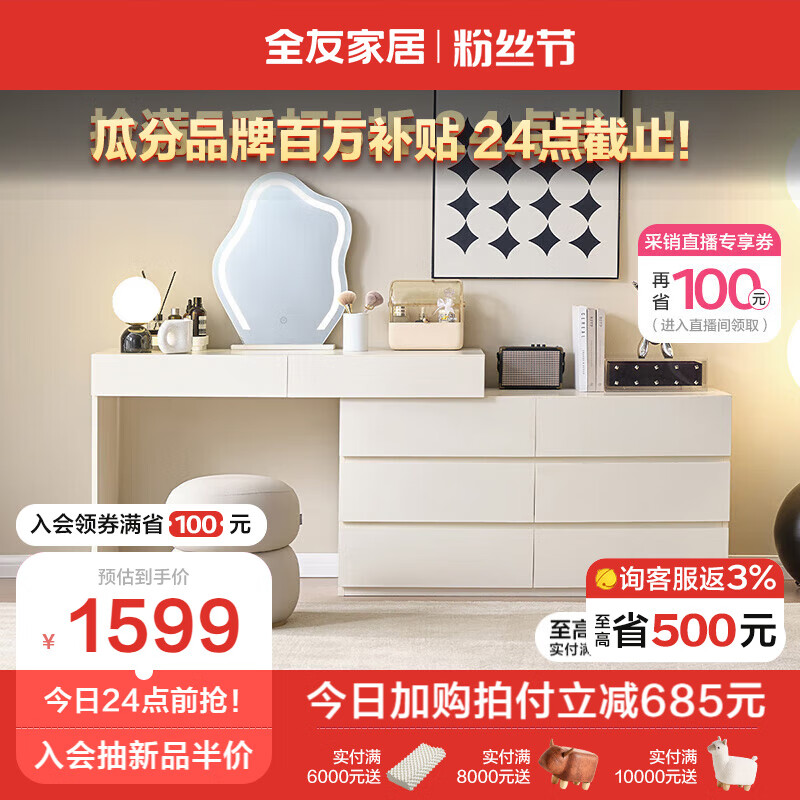 全友家居梳妆台卧室多功能可伸缩梳妆台斗柜一体化妆台置物桌子价格:2284.29元!