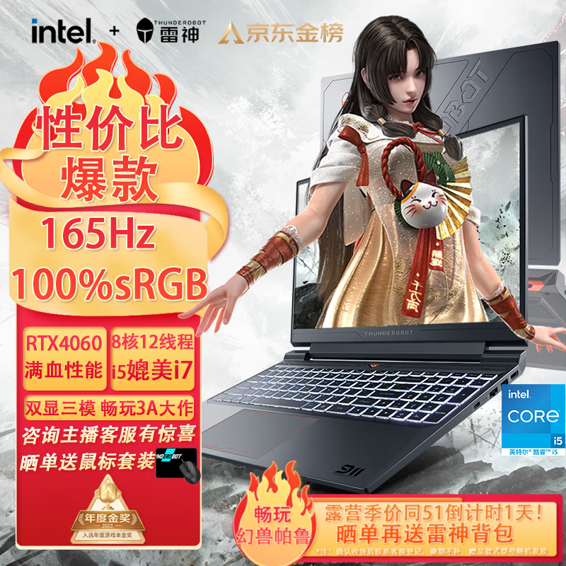 雷神(ThundeRobot) 911X猎荒者 15.6英寸独显轻薄高端全能游戏本学生编程剪辑AI设计师工作站骨灰玩家级笔记本电脑 i5-12450H|4060|32G|1T加装版价格:7299.00元!