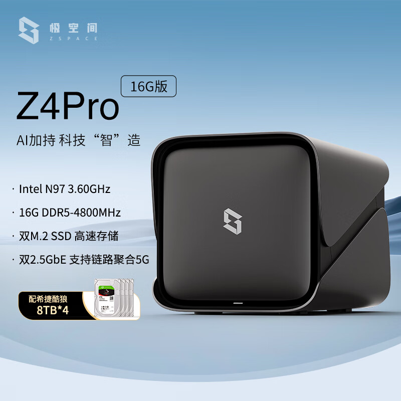 极空间私有云Z4Pro 16G版四盘位Nas网络存储家庭个人相册备份文件同步【配4块8T希捷酷狼硬盘】钛金灰价格:8999.00元!