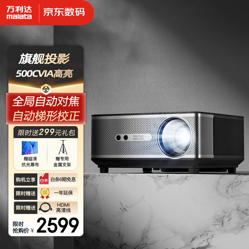 万利达(malata)RD-508 投影仪家用 办公投影机 智能家庭影院电视(全局自动对焦 自动梯形校正 500CVIA)价格:2999.00元!