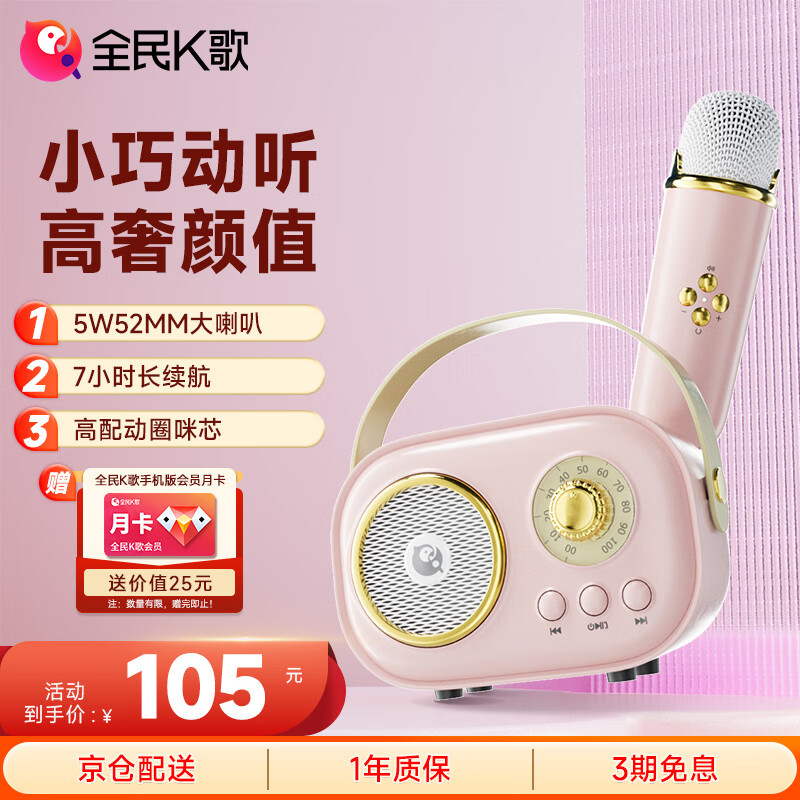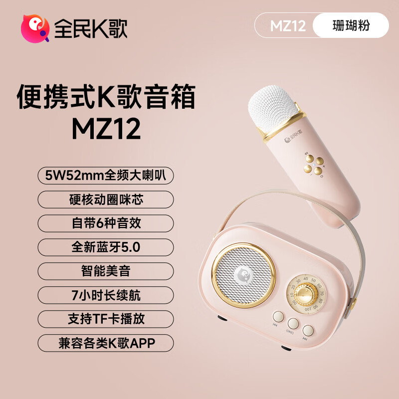K歌 便携式无线K歌音箱套装 超长续航 全能兼容各类app FM调频收音 自用送礼必选 户外大音量MZ12+珊瑚粉价格:105.00元!