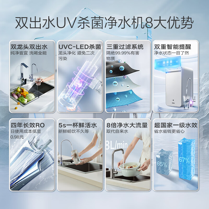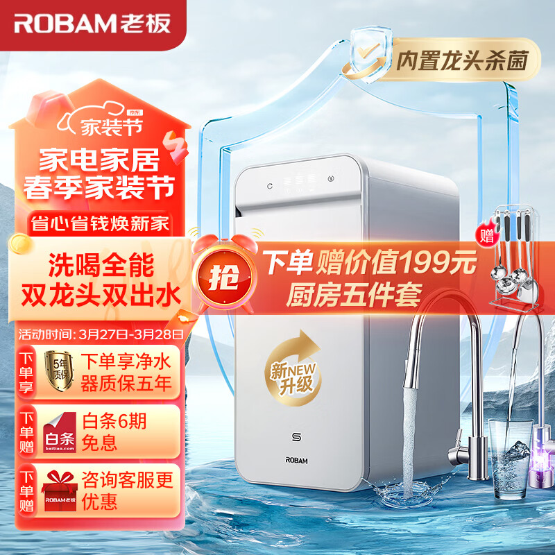 老板(Robam)净水器家用净水机600G 厨下式RO反渗透 UV杀菌双出水双龙头 洗喝全能直饮机JV332A-600G pro价格:2799.00元!