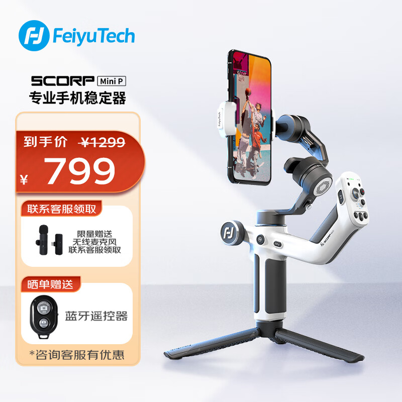 FeiyuTech飞宇蝎子MiniP 手机云台 Scorp miniP专业三轴防抖 提握一体 手持云台稳定器 手机稳定器 黑白色价格:799.00元!