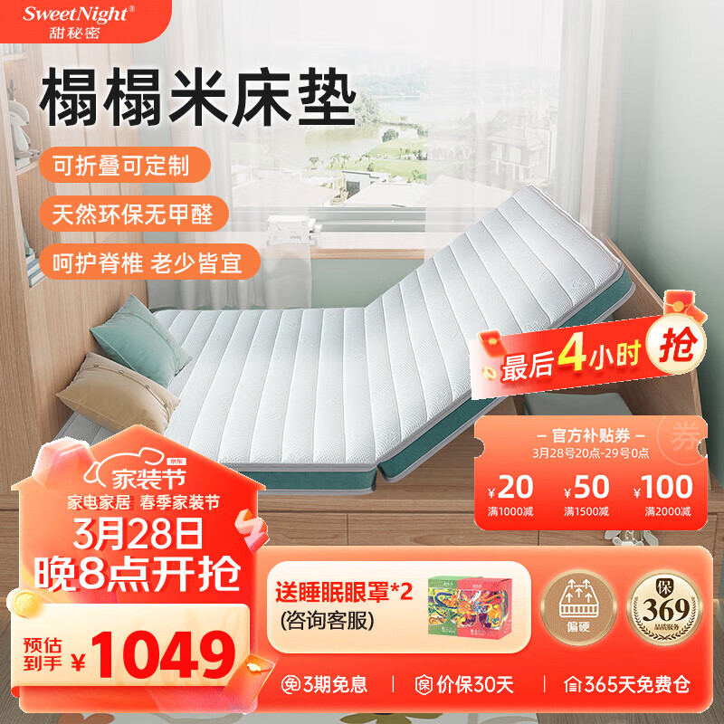 Sweetnight榻榻米床垫天然椰棕床垫折叠8cm床垫子 可定制 甜秘密丹左1.5x2米价格:1049.00元!