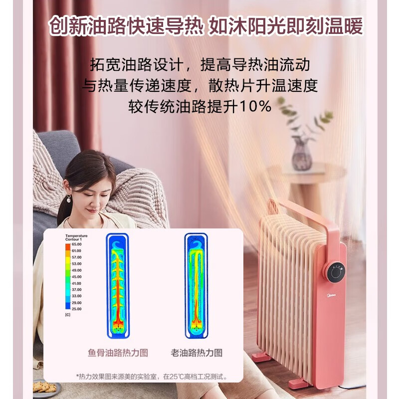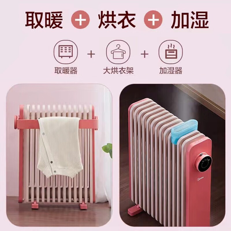 美的(Midea)取暖器 电热油汀 电暖器 电暖气片 暖风机家用 节能省电旋钮操控2200W功率加湿烘衣客厅暖脚烤火炉 【粉色品质款】22K价格:459.00元!