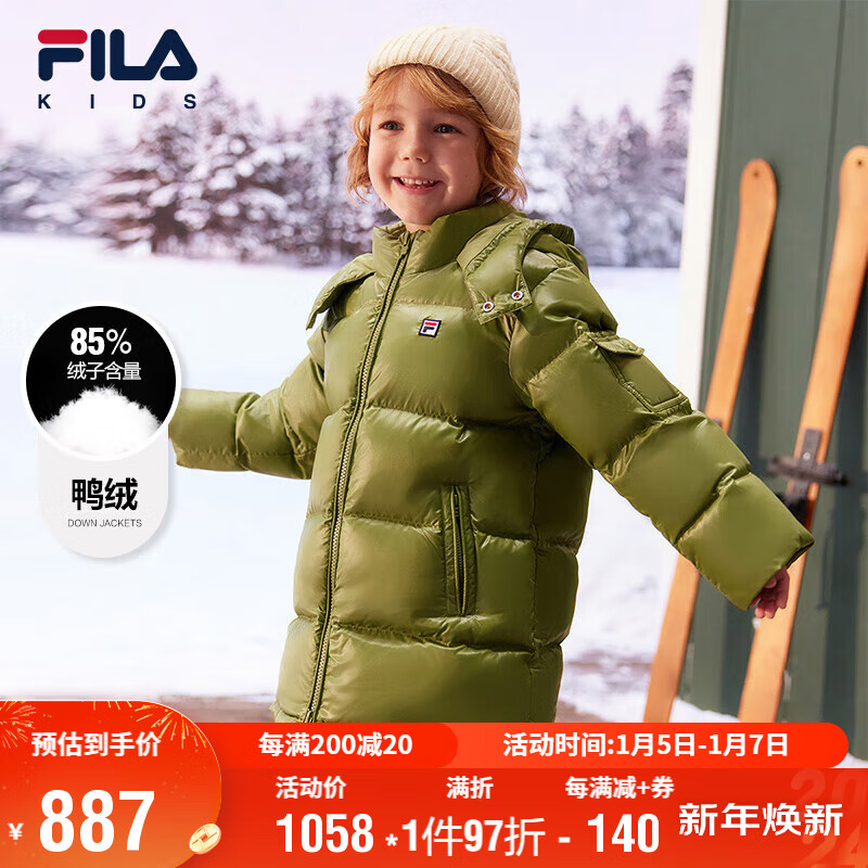 FILA斐乐童装外套2023秋冬中大童男童女童亮面中长款羽绒服价格:1058.00元!