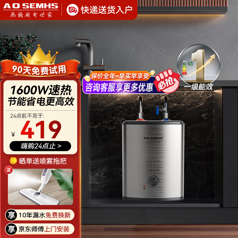 AOSEMHS小厨宝储水式厨房电热水器小型家用一级能效10升热水宝MF-10A上出水价格:419.00元!