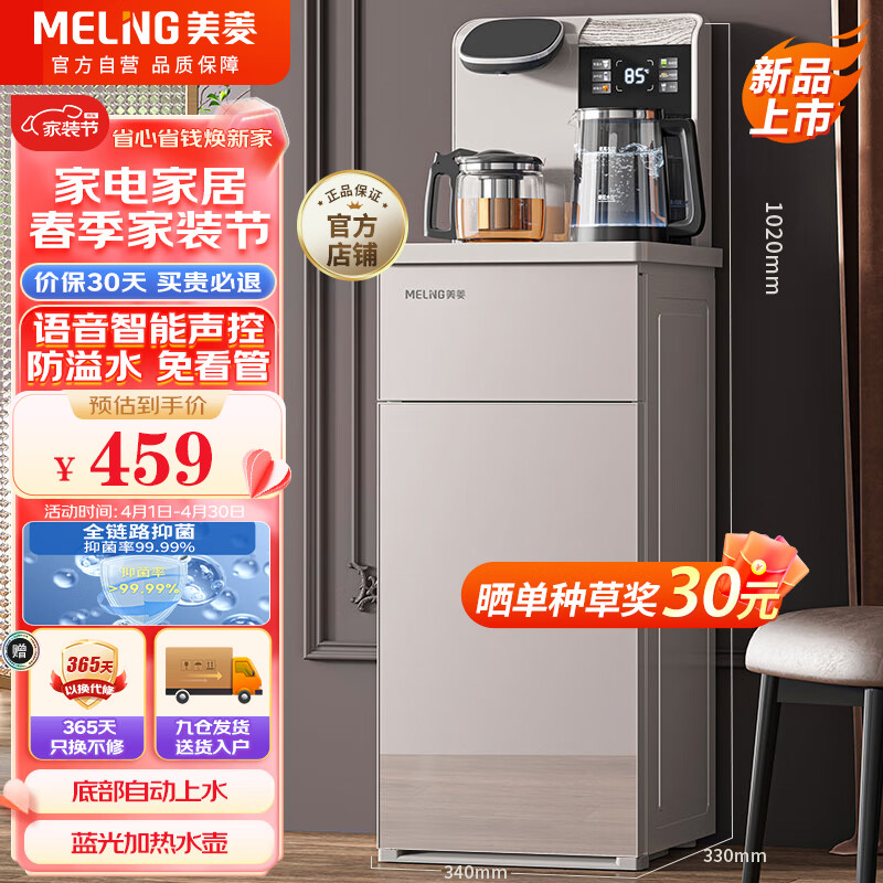 美菱(MeiLing)茶吧机家用智能语音多功能遥控大屏立式下置式一键选温自主上水饮水机温热款MY-C575(沙丘米)价格:459.00元!