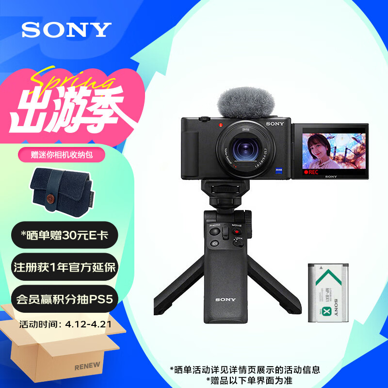 索尼(SONY)ZV-1数码相机 手柄电池套装黑色 小巧高颜值/美肤/强悍对焦/大变焦/入门/4K视频/Vlog ZV1价格:4799.00元!