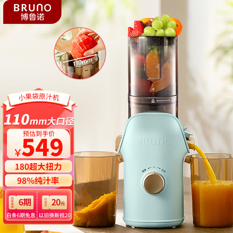 BRUNO原汁机多功能大口径家用全自动低速电动冷压榨果蔬榨汁机破壁豆浆养生果汁机渣汁分离薄荷绿价格:549.00元!