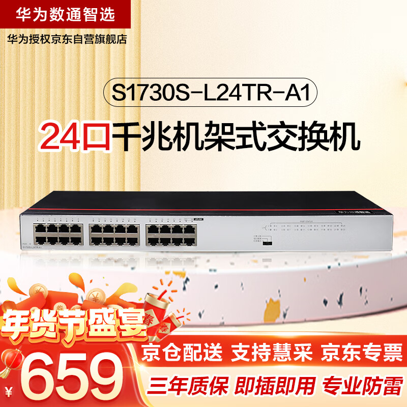 华为数通智选24口千兆交换机S1730S-L24TR-A1(A2) 机架二层接入以太网络分线器企工业级替代S1700-24GR价格:659.00元!