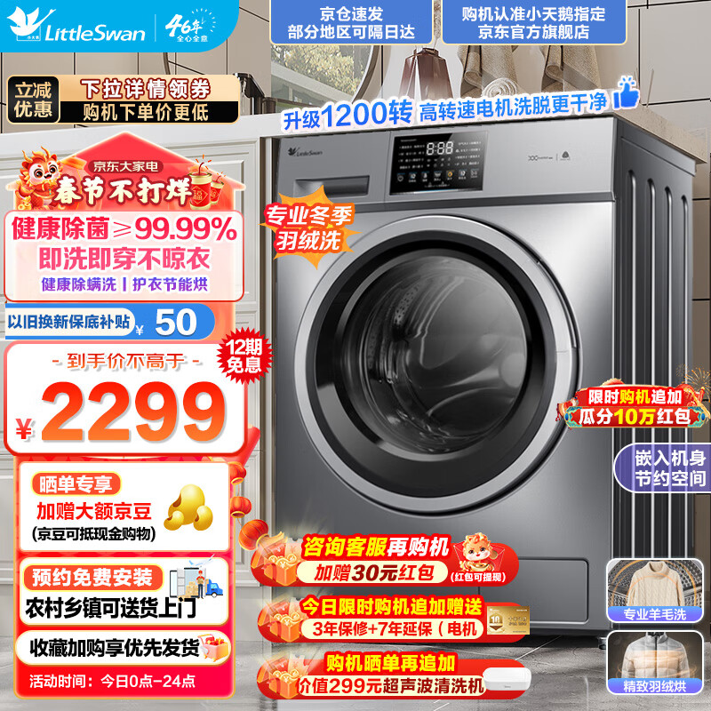 小天鹅(LittleSwan)滚筒洗衣机洗烘一体 全自动家用变频10公斤大容量带烘干智能家电超薄机身 除菌除螨羽绒服婴儿服洗 以旧换新TD100V23WDY价格:2239.00元!