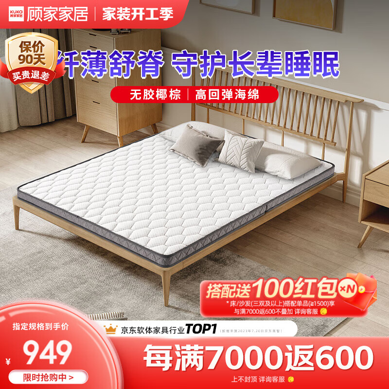 顾家家居床垫可折叠环保天然椰棕10cmDK.M0063B1.35*2米价格:949.00元!