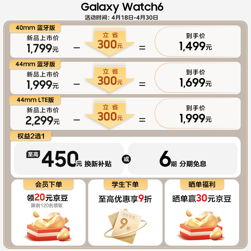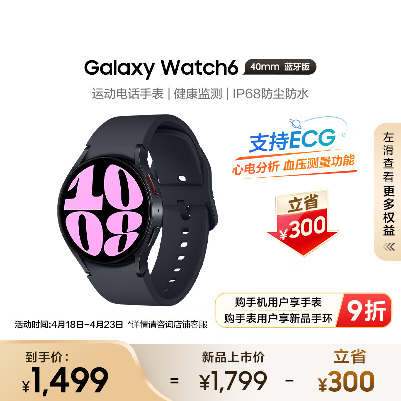 三星Galaxy Watch6 蓝牙通话/智能手表/运动电话手表/ECG心电分析/血压手表/健康监测 40mm 云影灰价格:1499.00元!