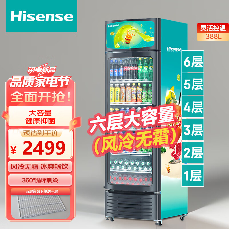 海信(Hisense)展示柜冷藏保鲜柜商用大容量升风冷无霜单门商用立式冰箱便利店超市饮料啤酒陈列柜SC-388WLA价格:2499.00元!