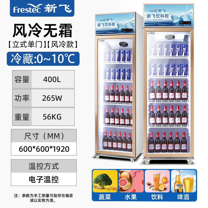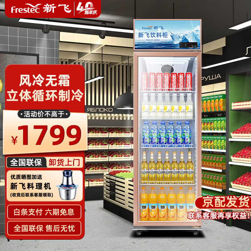 新飞(Frestec)400升单门冷藏冰箱风冷展示柜商用 超市饮料啤酒保鲜冷柜冷饮茶叶玫瑰金 风冷无霜价格:1799.00元!