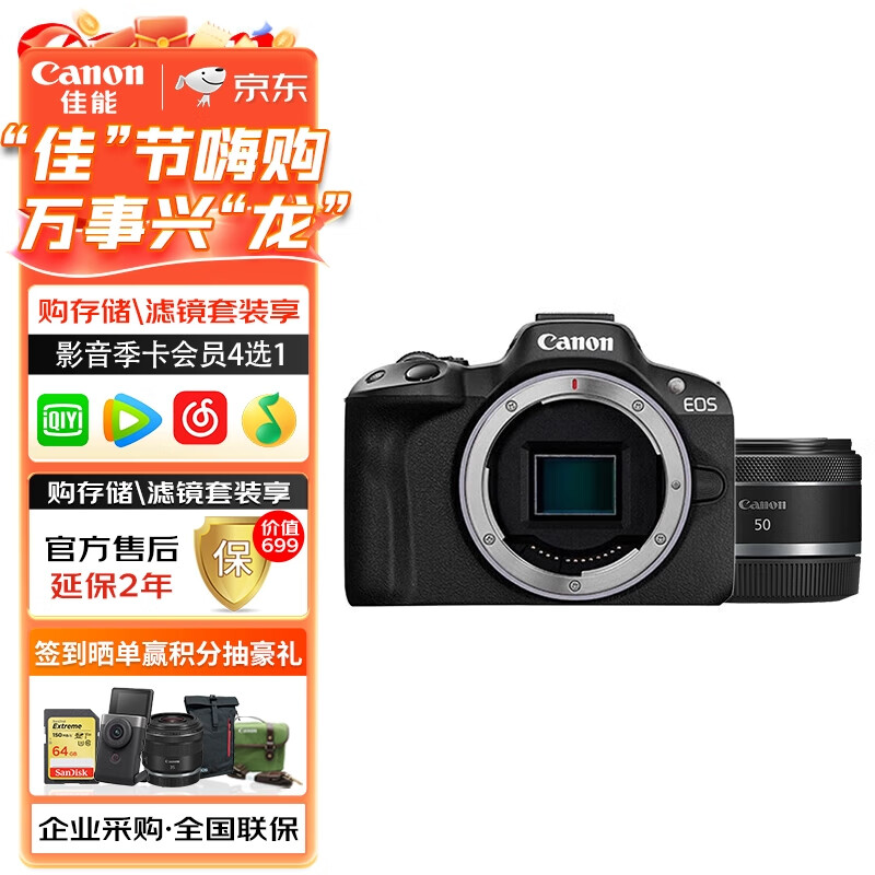 佳能(Canon)EOS R50单机身+RF 50mmF1.8镜头【黑色】扫街拍摄套装价格:9299.00元!