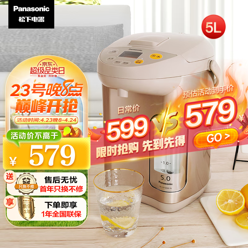 松下 (Panasonic)5L电水壶 电热水瓶 可预约 食品级涂层内胆 全自动智能保温烧水壶 NC-EF5000-N价格:488.00元!