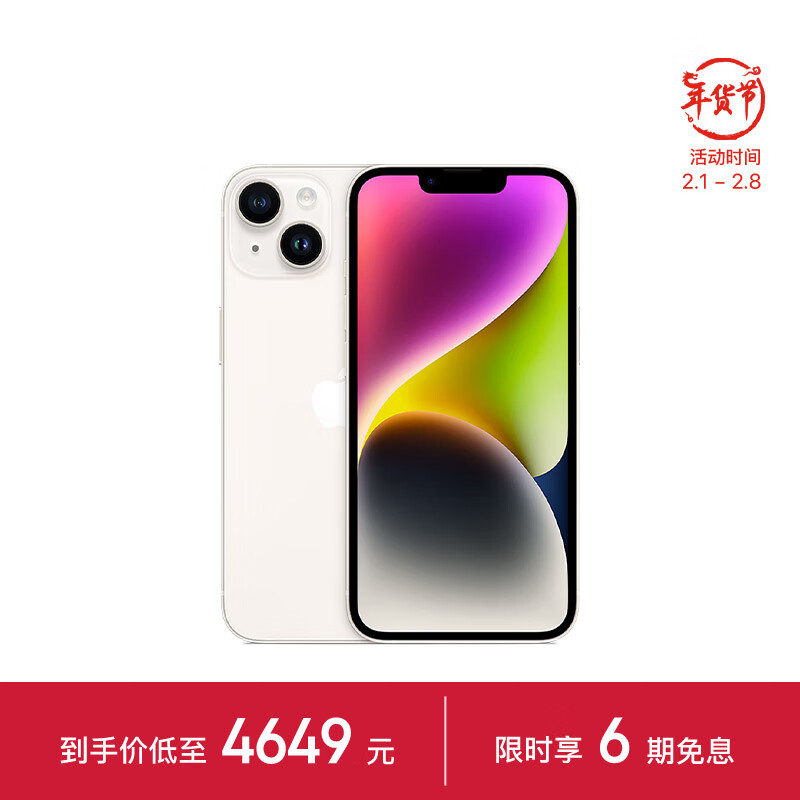 Apple/苹果 iPhone 14 (A2884) 128GB 星光色 支持移动联通电信5G 双卡双待手机价格:4699.00元!
