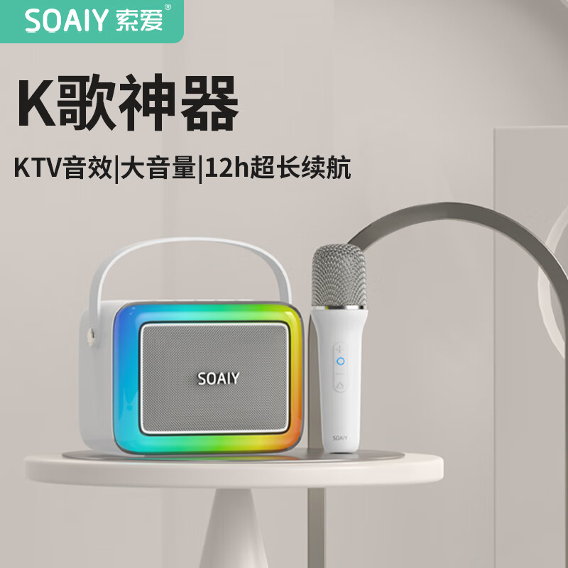 索爱(soaiy)SK10家庭KTV音响手机电视K歌点歌机话筒蓝牙音箱一体机儿童家用户外麦克风套装 单麦版 苹果白价格:279.00元!