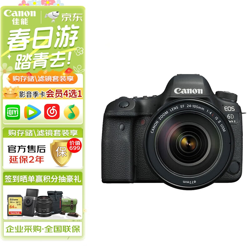 佳能(Canon)EOS 6D Mark II 24-105 USM套机 扫街旅拍套装价格:16999.00元!
