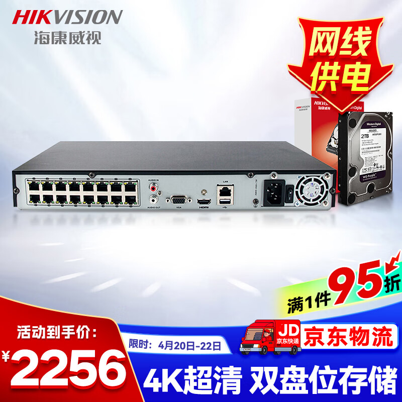 HIKVISION海康威视网络硬盘录像机监控16路满配16个摄像头带2T硬盘DS-7816N-Q2/16P价格:2407.00元!