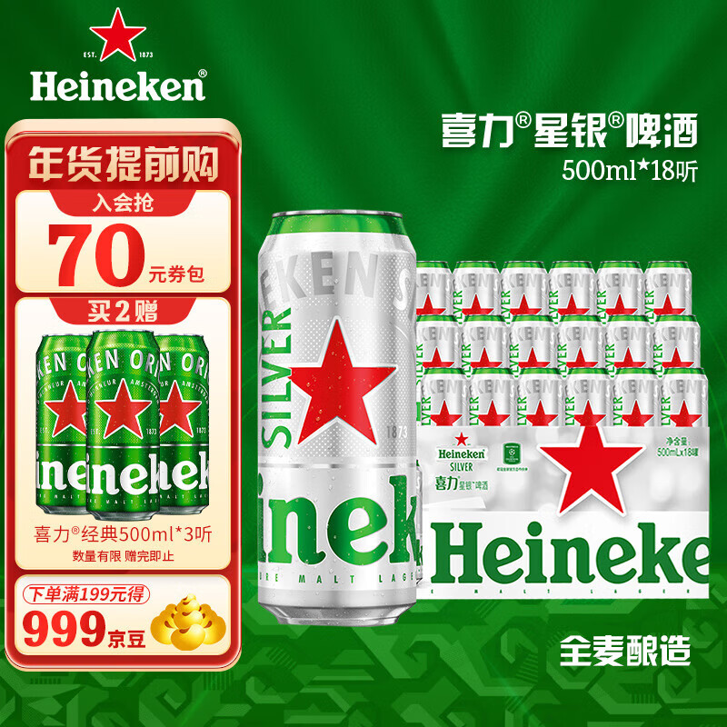 喜力星银500ml*18听整箱装 喜力啤酒Heineken Silver价格:168.00元!