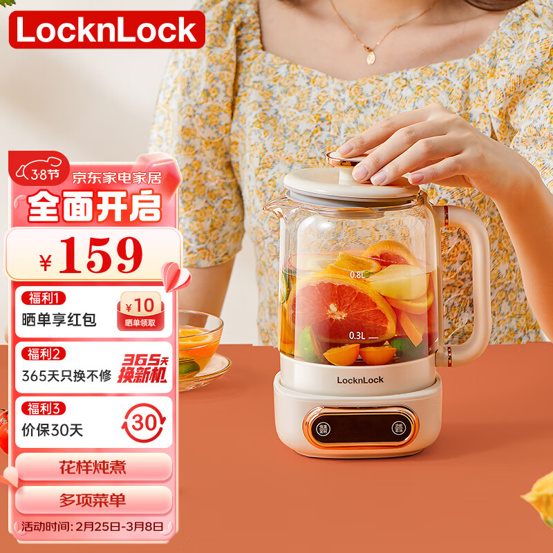 乐扣乐扣养生壶 0.8L煮茶器 家用玻璃花茶壶烧水壶办公室电热水壶煮茶壶价格:159.00元!