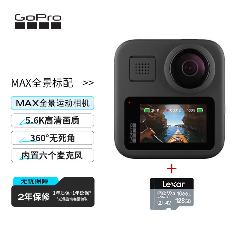 GoProMax全景标配 运动相机 户外摩托骑行防抖 水下潜水防水 滑雪照相机 加128G存储卡套组价格:3113.00元!