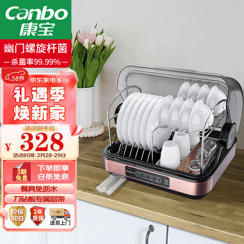 康宝(Canbo)消毒柜家用小型台式 迷你厨房桌面碗筷餐具婴儿奶瓶紫外线烘干保洁免沥水消毒碗柜 ZTD30-KH1Z价格:328.00元!