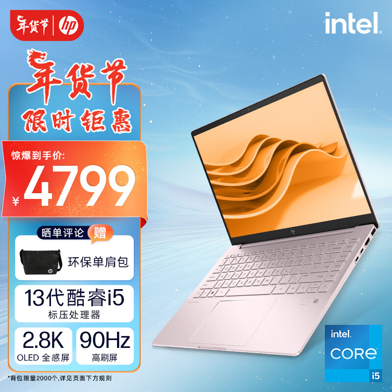 惠普HP 星Book Pro 14英寸轻薄笔记本电脑(13代酷睿i5-13500H 16G 1TB 2.8K 90Hz OLED全感屏)粉价格:4799.00元!