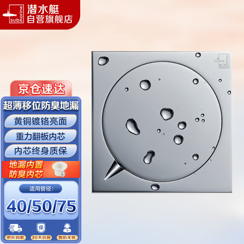 潜水艇(Submarine)TF40-10F 铜镀铬镜面超薄防臭地漏 移位地漏 40管径价格:108.00元!