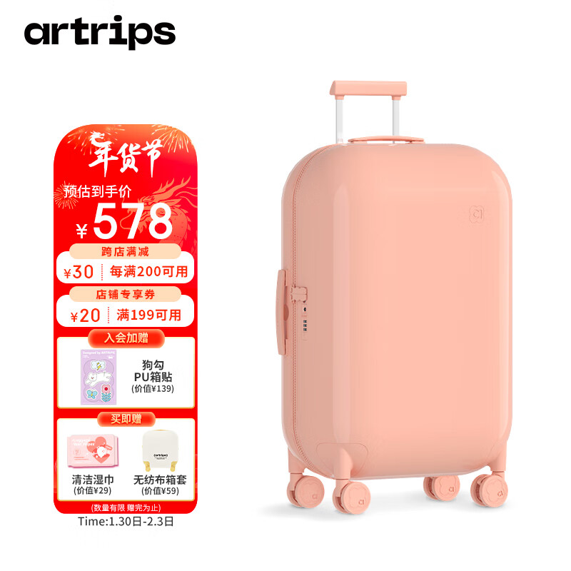 artrips拉杆箱行李箱24英寸大容量箱包女ins网红泡泡系列旅行箱 烟粉价格:738.00元!