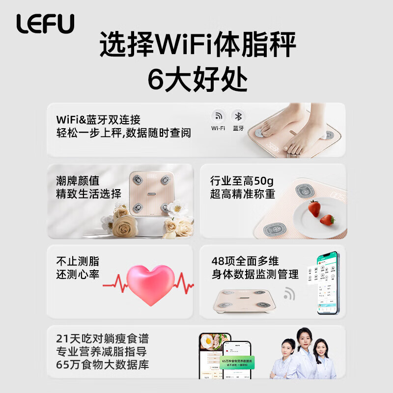 乐福能量云LEFU蓝牙&WiFi双连接体脂秤减肥专用精准电子秤人体高精度体重秤家用称重减脂价格:159.00元!