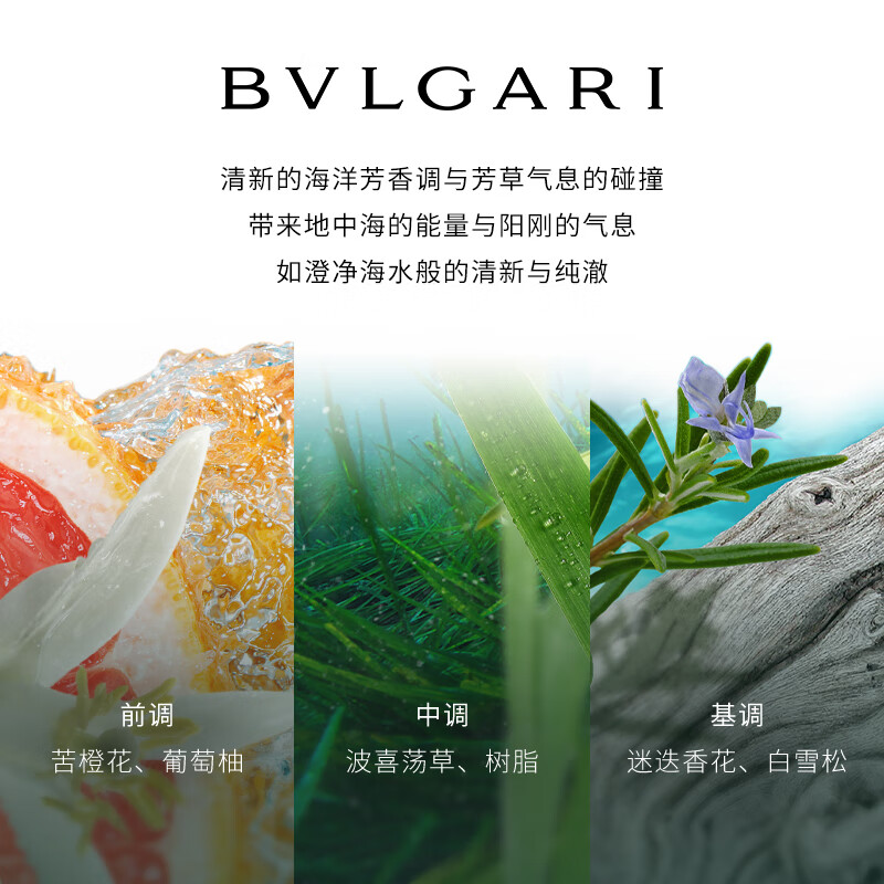 宝格丽(BVLGARI)海蓝男士淡香氛100ml 自然海洋木质调男香 情人节礼物 送男友礼物价格:1070.00元!
