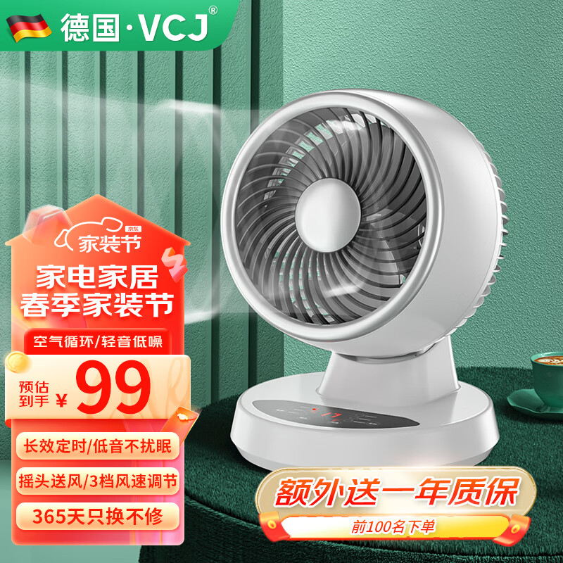 VCJ【德国品牌】空气循环扇电风扇家用摇头电扇涡轮换气扇循环对流风扇清新空气价格:119.00元!