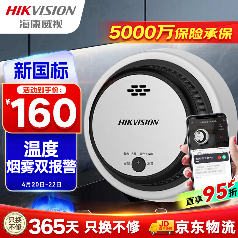 HIKVISION海康威视无线烟雾报警器独立式光电感烟感温火灾探测报警器3C商用认证智能消防NP-FY200(LORA)价格:169.00元!