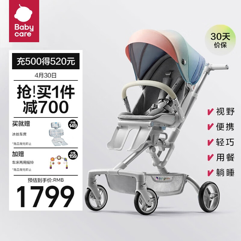 babycare头等舱婴儿推车高景观遛娃神器轻便可折叠可坐躺双向溜娃蒙因渐变价格:2499.00元!