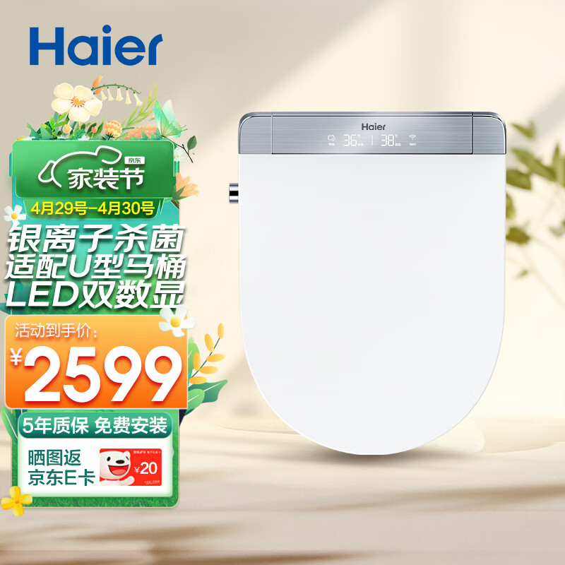 海尔(Haier)智能马桶盖 银离子杀菌自动润壁款 电动加热抗菌除臭数显 X6-28U1价格:3299.00元!
