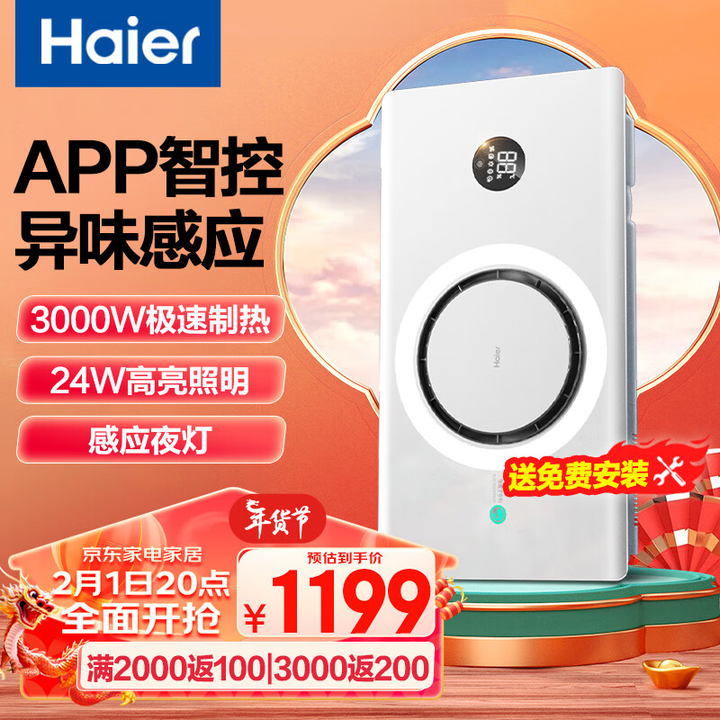 海尔浴霸Q360U1环形风暖浴霸智能浴室排气取暖器卫生间大功率环形出风价格:1299.00元!