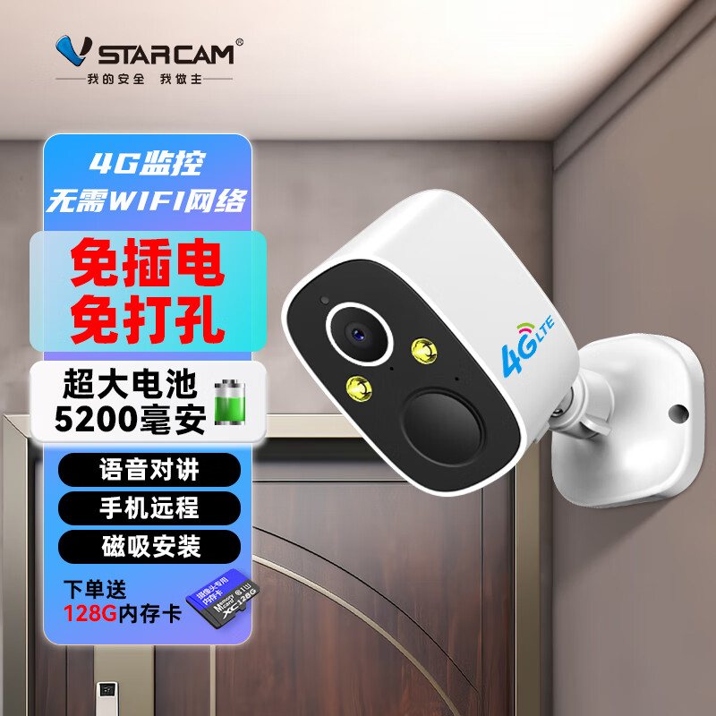 威视达康(VSTARCAM)4g门口监控器摄像头充电池款家用不插电免插卡监控无线摄像头无需连wifi室外入户门无电无网络可用价格:309.00元!