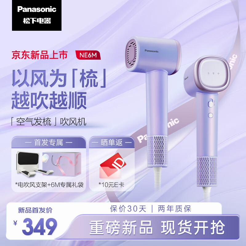 松下(Panasonic)空气发梳吹风机 高速负离子吹风筒 负离子水润护发 大功率速干不伤头发 家用送男女朋友礼物WNE6M 紫色(小人鱼色) 礼盒装价格:349.00元!
