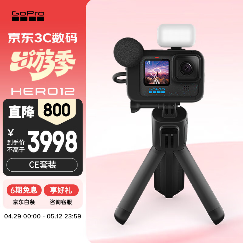 GoPro HERO12 Creator Edition运动相机 户外摩托骑行记录 防水防抖相机 Vlog数码潜水摄像机续航套装价格:3998.00元!