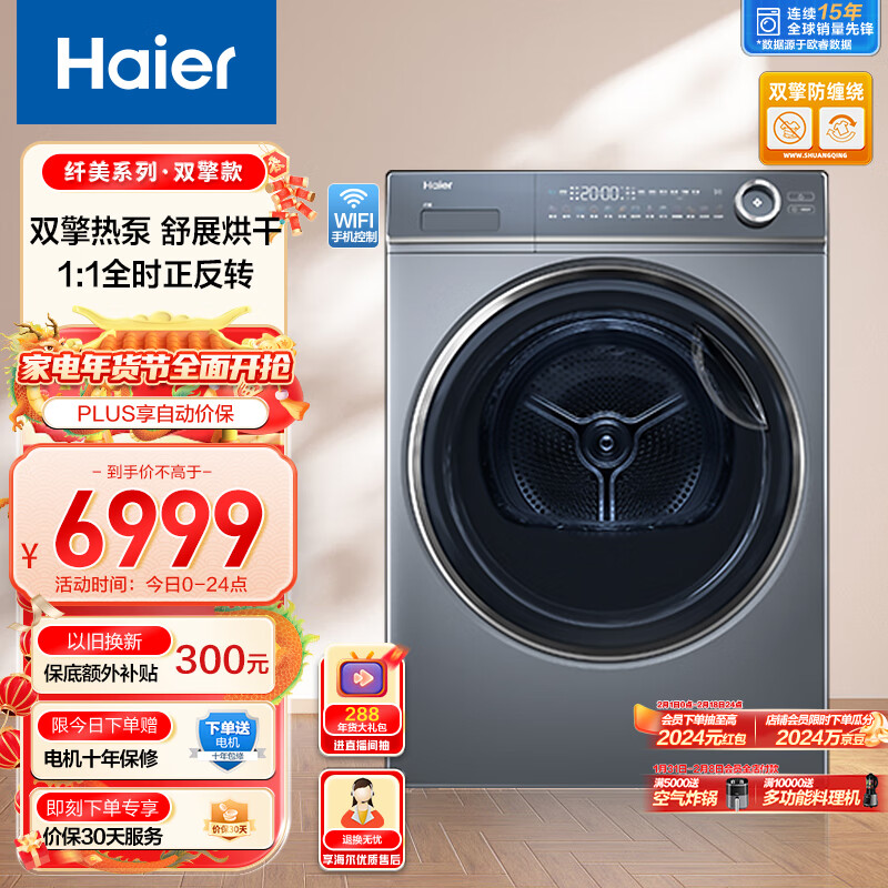 海尔(Haier)云溪176XS烘干机家用 10公斤双擎热泵干衣机 一件智烘 羊毛烘 空净过滤 EHGS100176XSU1以旧换新价格:6999.00元!