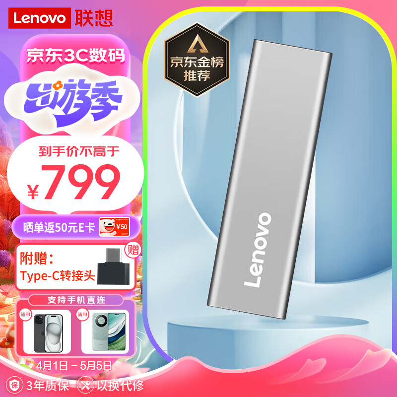 联想(Lenovo)2TB 移动硬盘固态(PSSD)Type-c USB3.1接口 手机直连 ZX1 银色价格:799.00元!