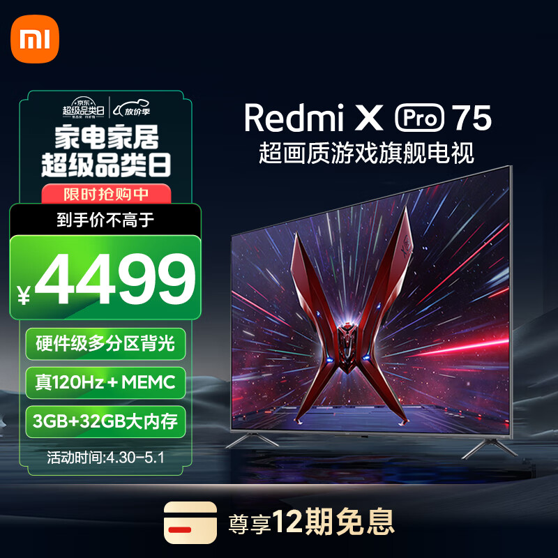 小米Redmi 游戏电视X Pro75英寸电竞原色屏多分区背光 120Hz高刷 智能电视L75R9-XP 以旧换新价格:4499.00元!