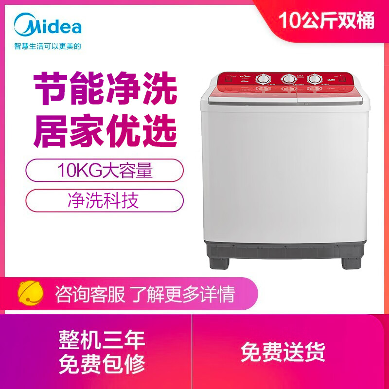 美的(Midea)双桶洗衣机半自动 MP100-S875 10公斤大容量 品牌电机 喷淋漂洗 双桶洗衣机 双缸洗衣机价格:699.00元!