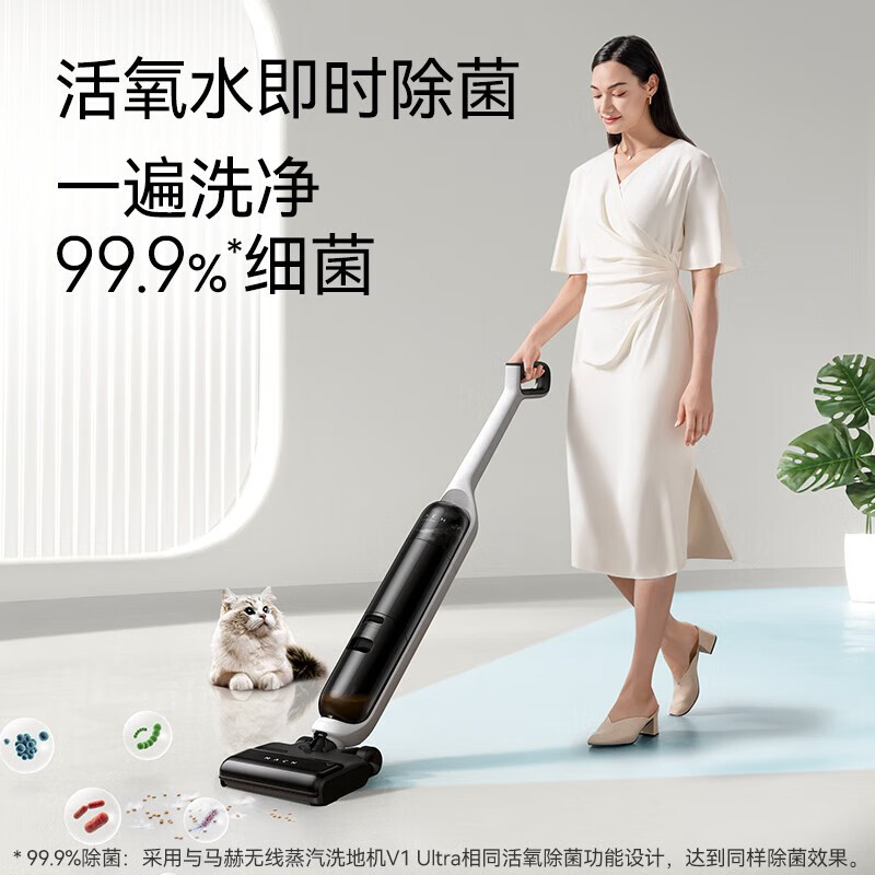 马赫(MACH)无线智能洗地机V1 家用扫地机吸拖洗一体手持吸尘器 活氧除菌 热风烘干 贴边清洁价格:3290.00元!