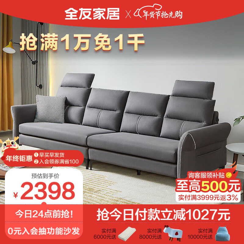 全友家居 现代简约usb充电功能科技布沙发客厅家具102679A价格:3425.71元!